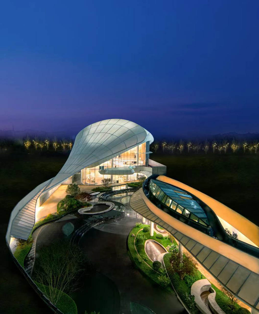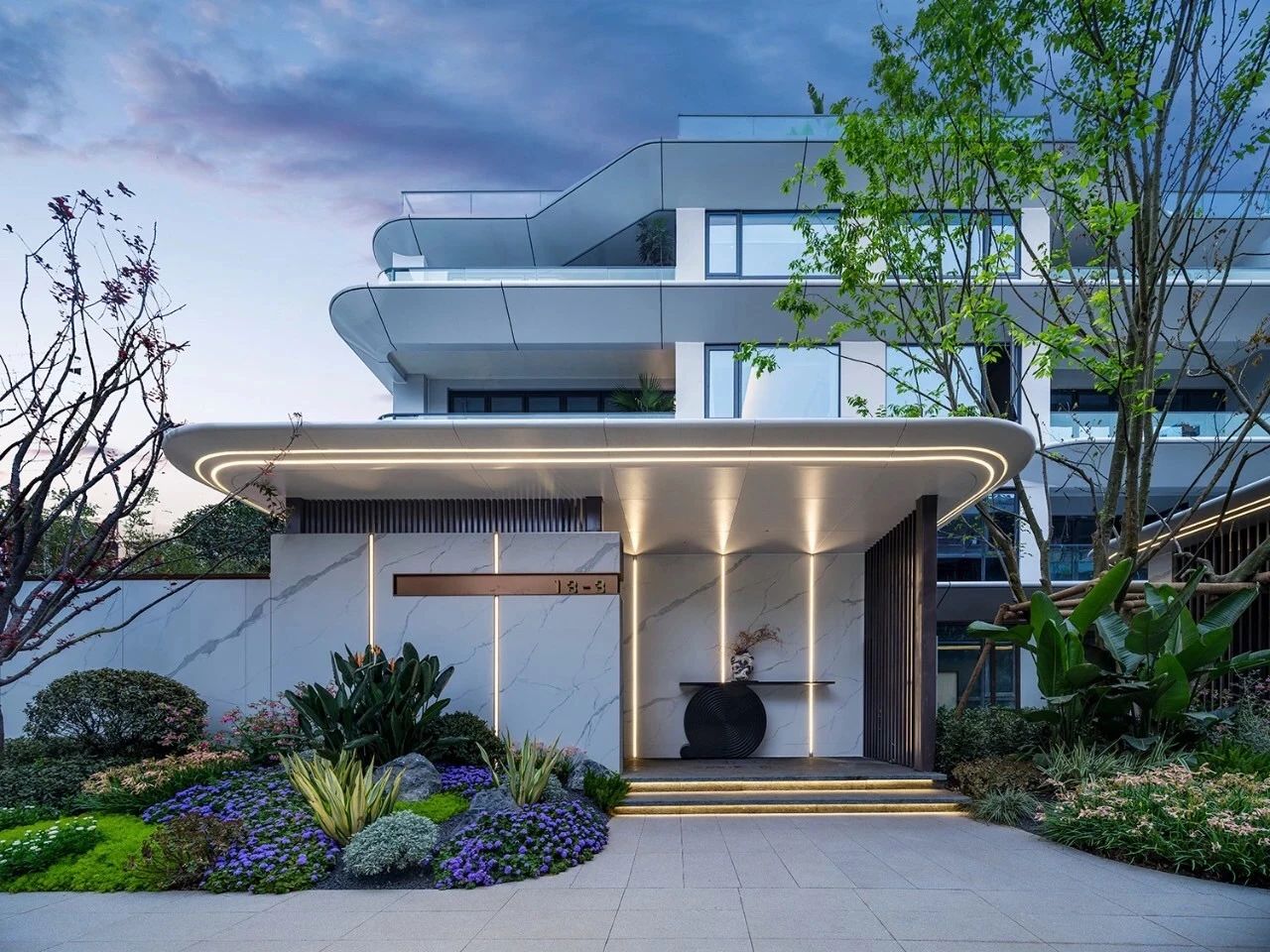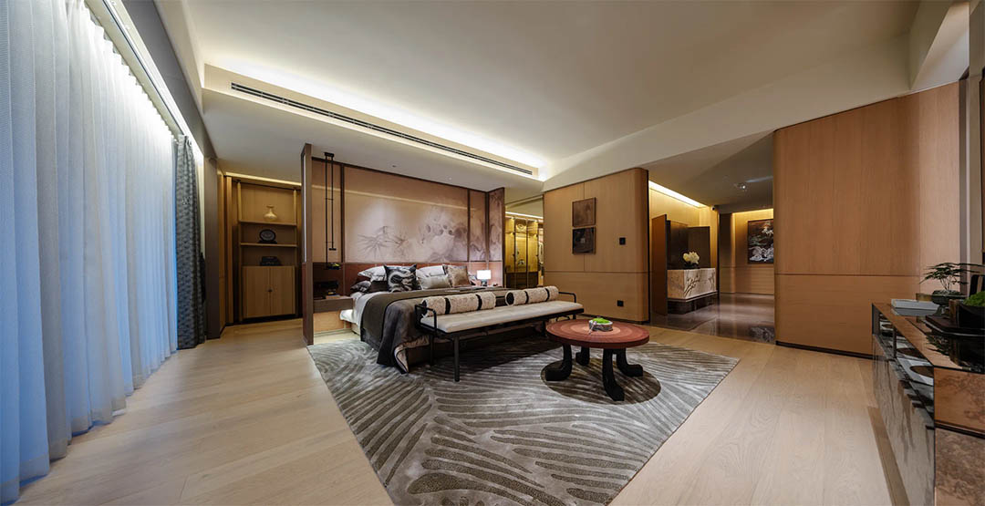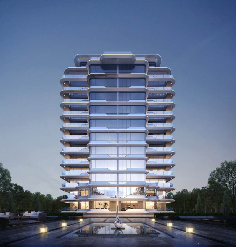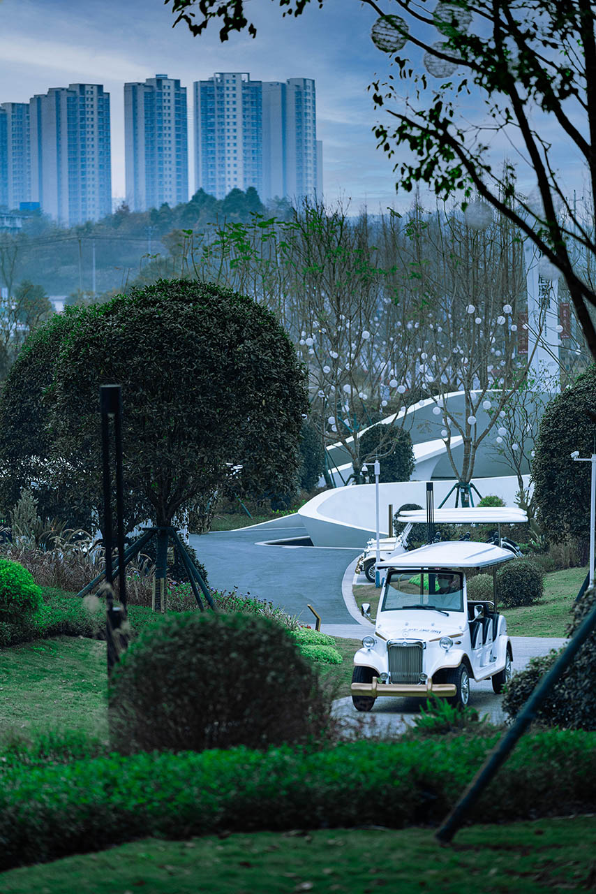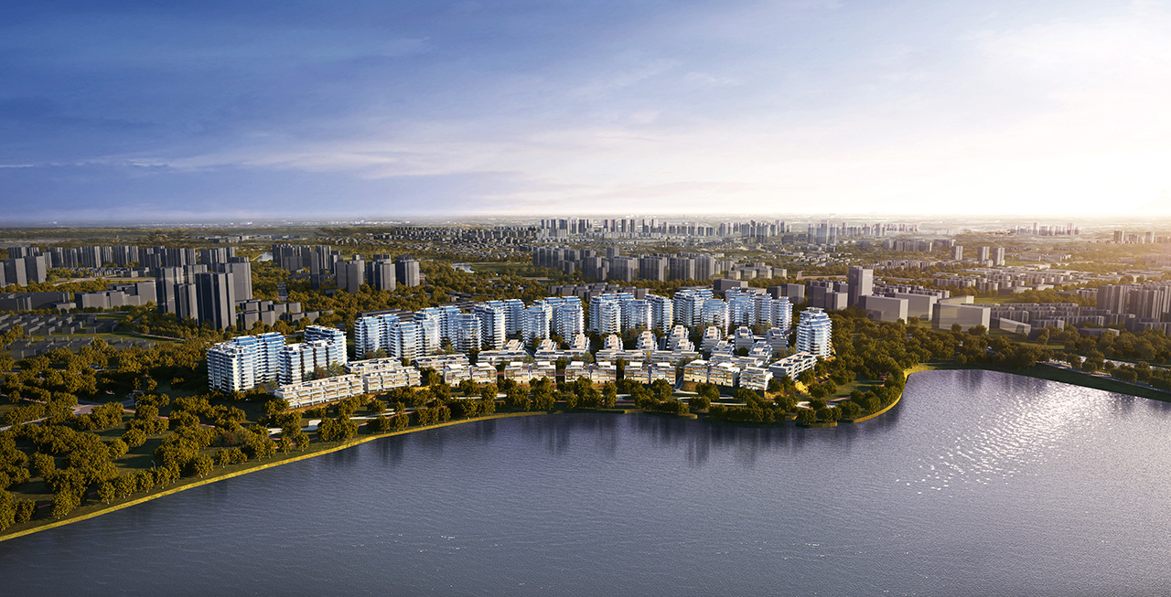 融合山水人城,犹如生长在公园里。整体占地约320亩,容积率仅约1.8。设计顺应原生丘陵地貌布局全端景墅大平层、臻钻岛院墅以及创世游艇豪宅,以大面积的玻璃幕墙设计,营造约50%窗地比,呈现超脱于市场的阔绰尺度,给予巨幅湖居的朗阔视野。