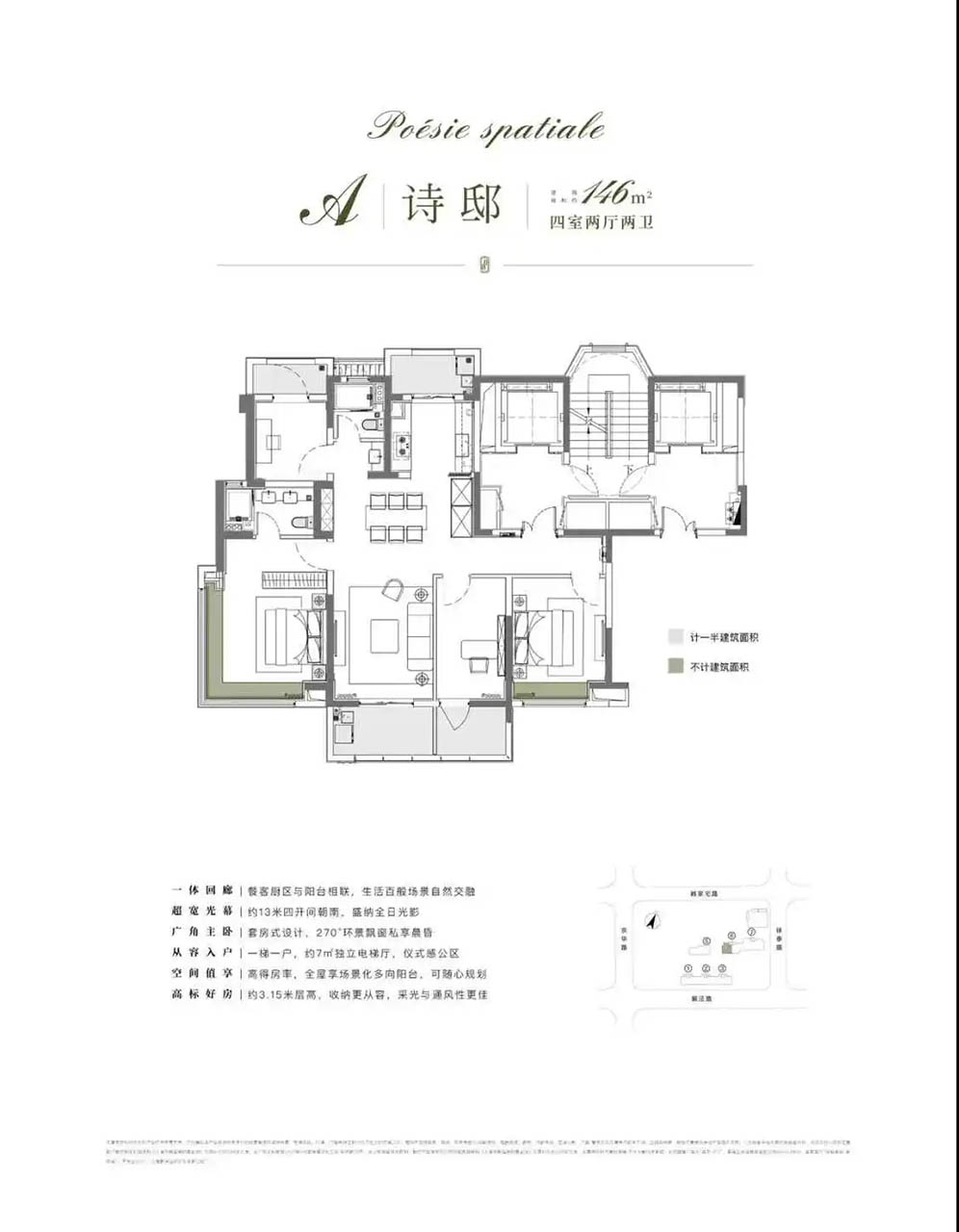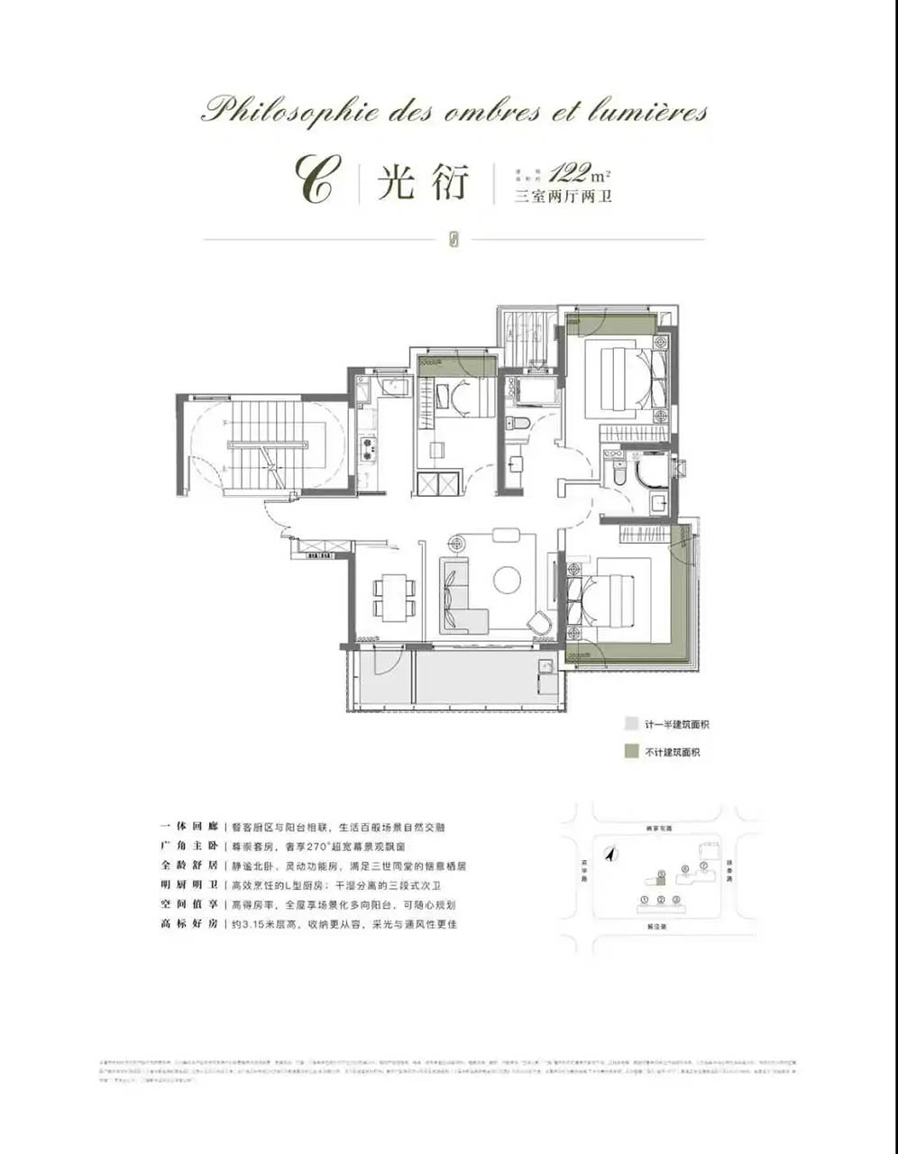 特邀业内知名的巨擘参与规划设计,层高约3.15米、不封阳台,有更多的附赠面积给业主,提高了空间利用效率;同时,户户配置地暖、新风、高端厨电卫浴等,皆采用知名品牌,为业主开启高品质的精致生活。